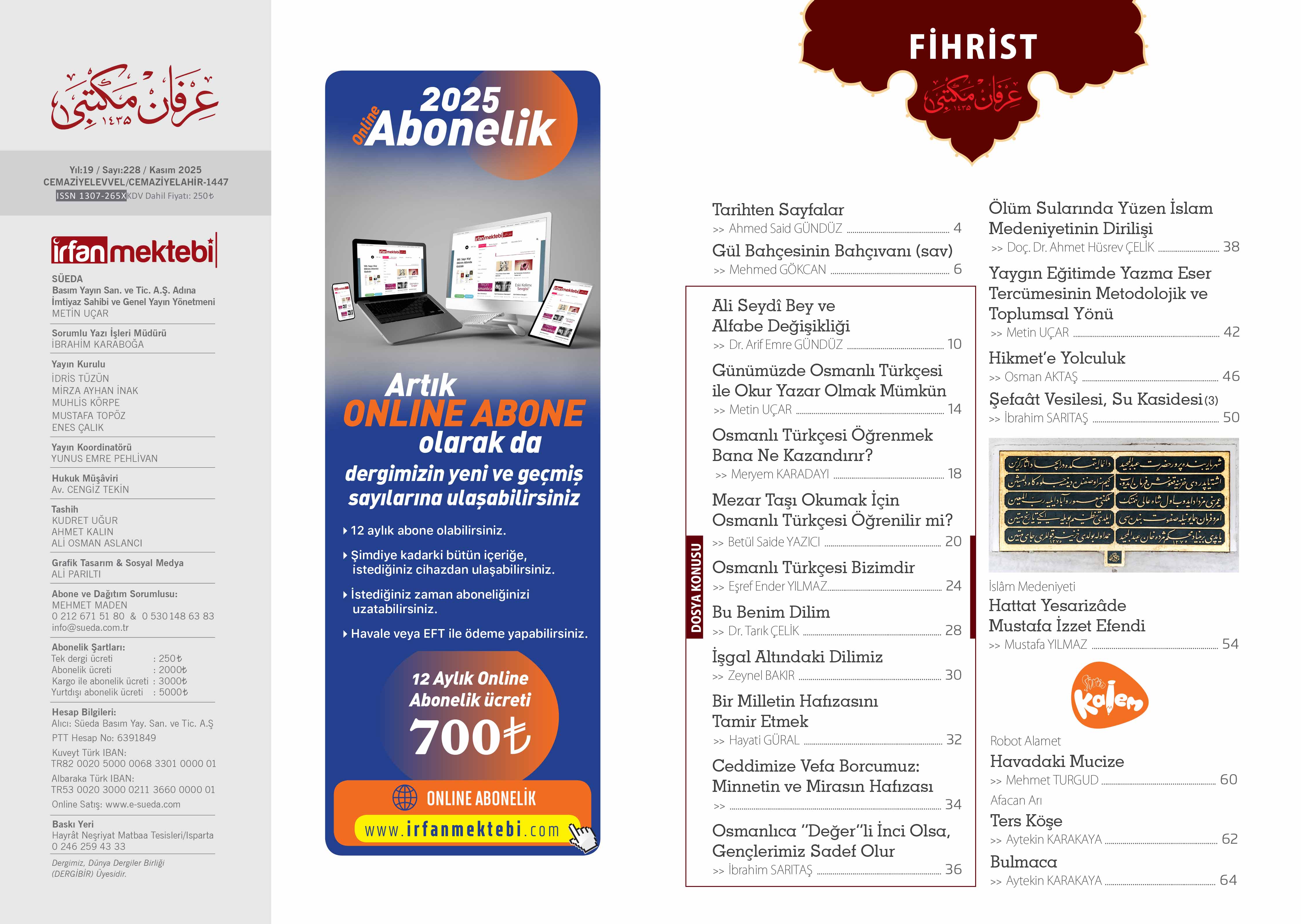 12 ay boyunca çıkacak olan yeni sayıların içeriklerine ulaşabilirsiniz. Üyeliğiniz boyunca (12 ay) geçmiş bütün sayılarımıza ulaşabilirsiniz. Sitemize bilgisayarınızdan veya mobil cihazlarınızdan giriş yapabilirsiniz. Dergimizdeki yazıların ekstra içeriklerine (uzun yazılar, fotoğraflar, videolar) ulaşabilirsiniz.